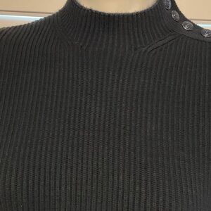 Elegant navy sweater with crew neck. Long sleeves and subtle branding on sleeve.
