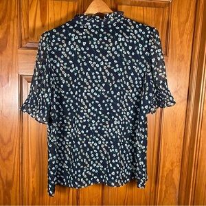Tommy Hilfiger Navy Floral Lightweight Blouse with Ruffled Neckline and Buttons