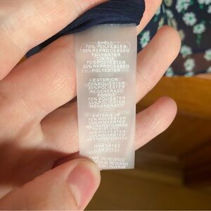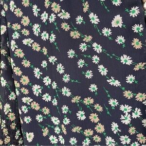 This beautiful Tommy Hilfiger blouse is a stunning addition to your wardrobe! With its navy base with a contrasting floral pattern it is perfect for building outfits. It features a ruffled neckline, ruffled puffed short sleeves, and a collar with branded silver buttons! Fully lined not including sleeves.