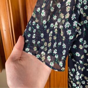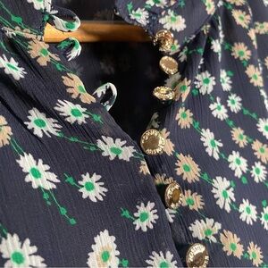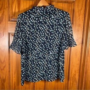 Tommy Hilfiger Navy Floral Lightweight Blouse with Ruffled Neckline and Buttons