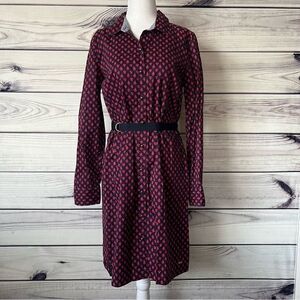 Tommy Hilfiger Navy & Red Floral Poppy Patterned Button Down Belted Shirt Dress