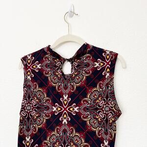 [Tommy Hilfiger] Navy Scroll Scarf Print Knot Neck Sleeveless Blouse Sz Large L