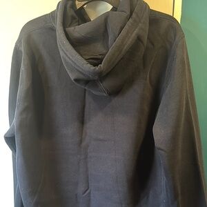 Classic navy sweatshirt with bold red and white Tommy Hilfiger logo. Comfortable and stylish.