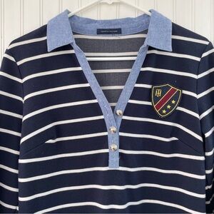 Tommy Hilfiger Navy White Striped Long-sleeve Dress Oxford Collar Size Large