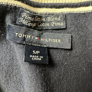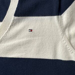 Tommy Hilfiger Navy & White Striped V-Neck Sweater S/P Pima Cotton Nautical Boat