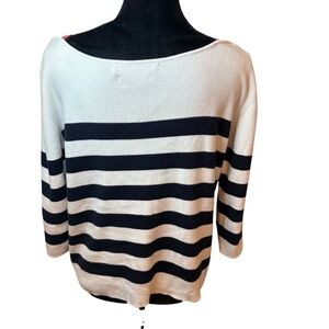 Stylish navy and cream stripes. Comfortable crew neck design. Perfect for casual wear.