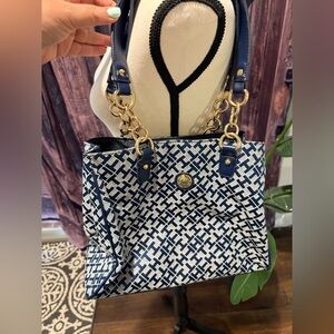 Tommy Hilfiger Navy and White Patterned Tote Bag