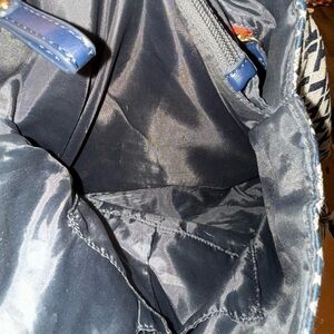 Stylish navy and white tote bag with gold accents. Perfect for everyday use. Some fraying at the top of the handle See Pics . Overall nice condition very pretty bag Amazon sells replacement straps