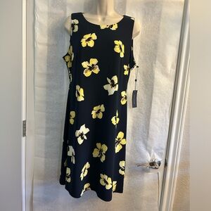 Tommy Hilfiger sophisticated sheath dress Navy blue w/yellow floral print. Its midi length adds a timeless touch to the overall style. 95% poly & 5% elastane. NWT.