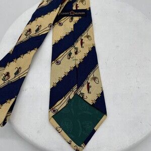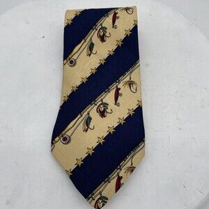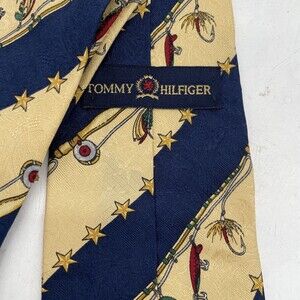 Tommy Hilfiger Neck Tie Fishing Lures 100% Italian Silk Made in USA Blue Cream