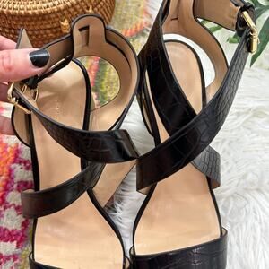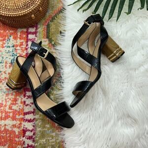Tommy Hilfiger Neutral Black Strappy Ankle Strap Block Heels 10