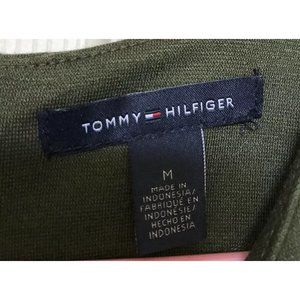 Tommy Hilfiger Olive Green Stretch Sheath Dress With Front Pockets and Zip Back. Size M
