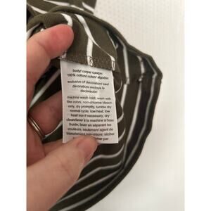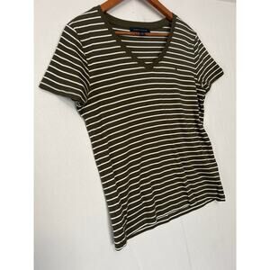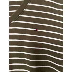Tommy Hilfiger Oliver Green White Striped V Neck Short Sleeve 100% Cotton Top L