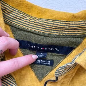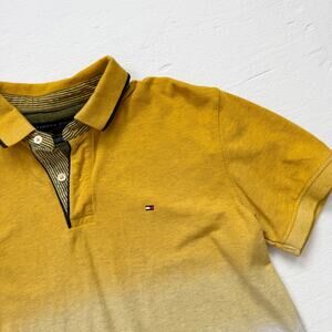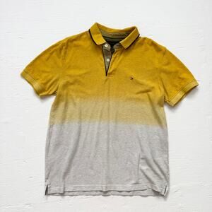 Tommy Hilfiger Ombre Polo Shirt Yellow Gray Cotton Custom Fit, Size Large