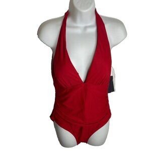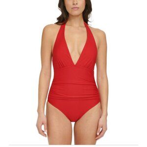 Tommy Hilfiger One Piece Ribbed Halter Neck Swimuit Scarlet Size 10