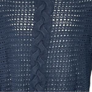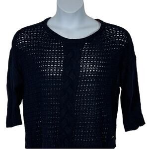 Tommy Hilfiger Open Crochet Knit Navy Sweater Mixed Media Cable Open Crochet