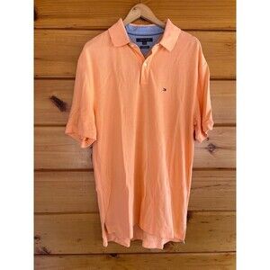 Tommy Hilfiger Orange Polo Shirt Short Sleeve Button Size L