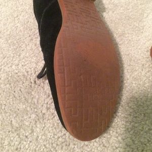 Made from suede and leather- goes with everything! Slight wear (as shown in photo and reflected in price) but still in excellent quality with tons of use left!