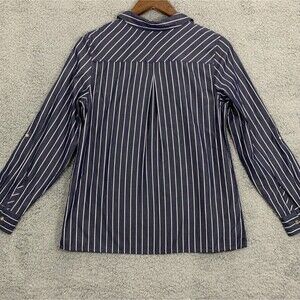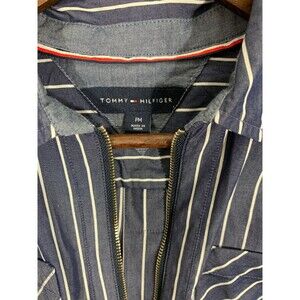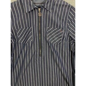 Title: Tommy Hilfiger PM Blue & White Striped Deep V-Neck Half-Zip Long Sleeve Shirt