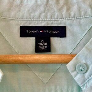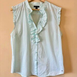 Tommy Hilfiger Pastel Blue Button Ruffled Sleeveless Fitted Shirt Size XL
