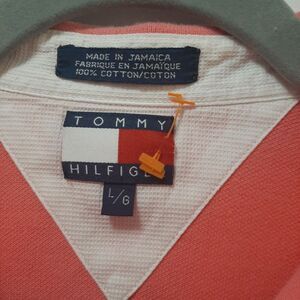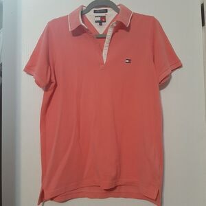 Tommy Hilfiger Peach Melon Collared V Neck Tee Shirt 100% Cotton Large