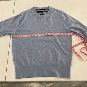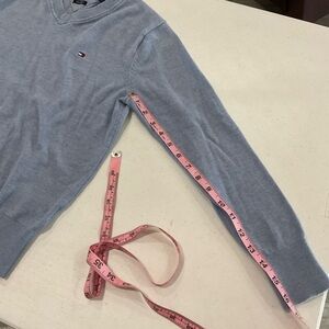 Tommy Hilfiger Pima Cotton Sweater Blue V-Neck Cozy Knit Logo Top Men’s X-Small