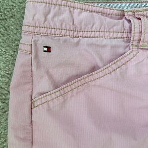 Experience the perfect blend of style and comfort with these Tommy Hilfiger Bermuda shorts. Crafted in a soft pink hue, they feature a cuffed hem and belt loops for a polished look. Ideal for casual outings, these shorts offer a relaxed fit that ensures all-day comfort. There is one very small spot on the front pocket (see picture) that is not very noticeable. Otherwise in great condition. Comes from a smoke/pet free home.