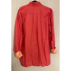 Tommy Hilfiger Pink Button Down Rainbow Cuff Pure Linen (L) Preppy Pride Vibrant