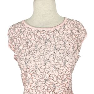 Tommy Hilfiger Pink top with eyelet lace pattern and capped sleeves. Very good condition.