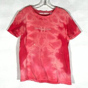 Tommy Hilfiger Pink White Tye Dye Acid Wash Tee T Shirt