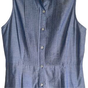 Tommy Hilfiger Pintuck Pleat Linen Cotton Chambray Shirtdress Sz 8
