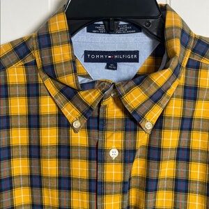 Tommy Hilfiger Plaid Blutton Down Shirt Cotton Blue Yellow XL