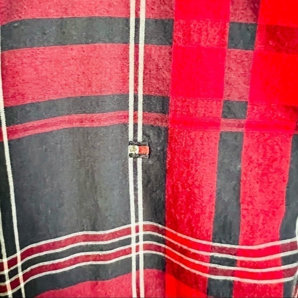 Tommy Hilfiger Plaid Button Up Collared Shirt Red and Navy Short Puffed Sleeve S