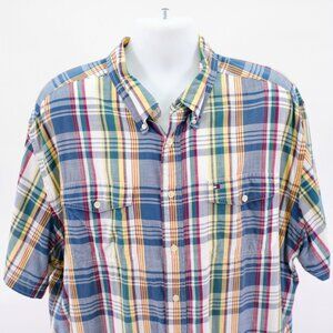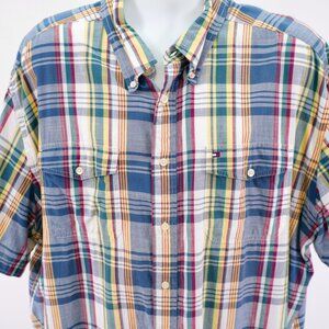 Tommy Hilfiger Plaid Short Sleeve Plaid Button Down 2XL Blue White Green Yellow Red Cotton