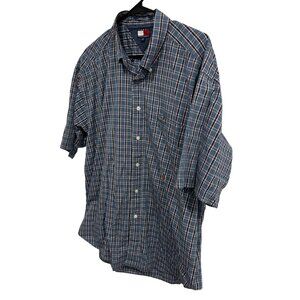 Tommy Hilfiger Plaid Short-Sleeve Button-Down Shirt Cotton Blue Red Sz XL