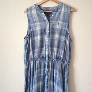 Tommy Hilfiger Plaid Sleeveless Shirt Dress 14 Blue Checker Midi Handkerchief