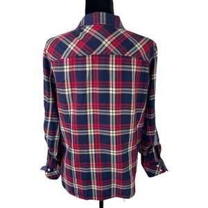 Tommy Hilfiger Plaid Woman’s Red Navy Long sleeve Button down Boyfriend shirt L