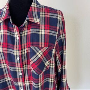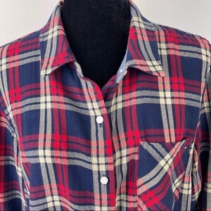 Excellent condition Tommy Hilfiger Plaid Woman’s Red Navy Long sleeve Button down Boyfriend shirt L.