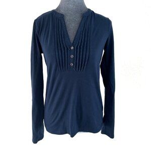 Tommy Hilfiger - Pleated Bib LS Henley w/Roll Tab Sleeves - Navy - Size XS