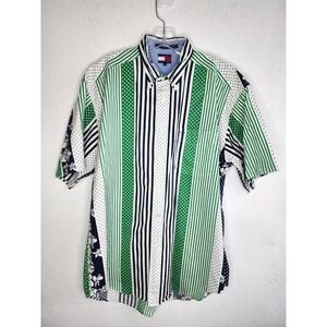 Tommy Hilfiger Polka Dot Striped Button Up Short Sleeve Floral Shirt Mens L VTG