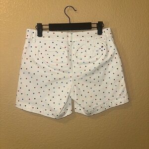 Chic white shorts with colorful polka dots. Ideal for casual wear.