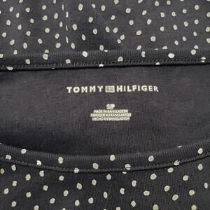 Tommy Hilfiger Polka-dot Top Women's Small Navy White Short Sleeve Boat Neck