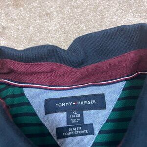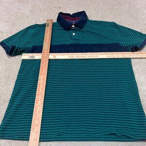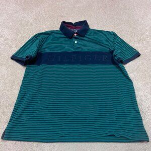 Tommy Hilfiger Polo Men’s Blue Green Striped Short Sleeve Size XL Slim Fit