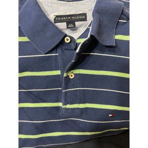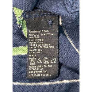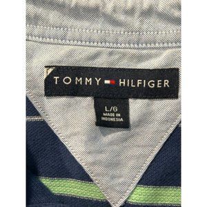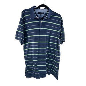 Tommy Hilfiger Polo Shirt Large Mens Navy with Green Stripe Casual Short Sleeve