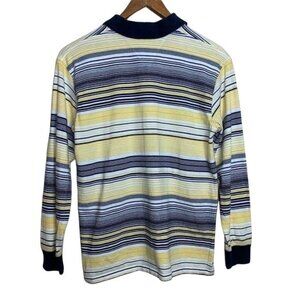 Tommy Hilfiger Polo Shirt Long Sleeve Navy Yellow Stripe Boys Size Large