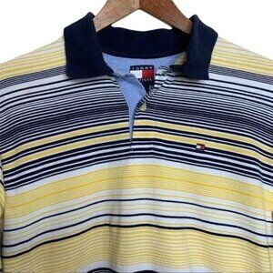 Tommy Hilfiger Polo Shirt Long Sleeve Navy Yellow Horizontal Stripe Casual School