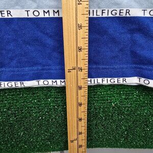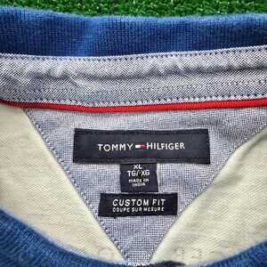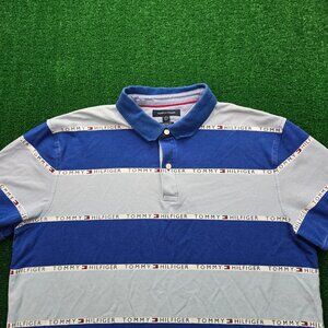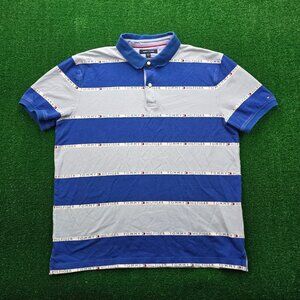 Tommy Hilfiger Polo Shirt Men XL Blue Striped Short Sleeve Preppy Golf Casual