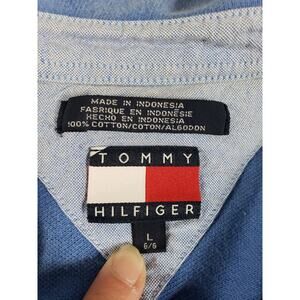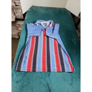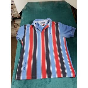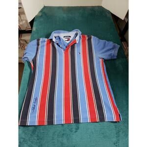 Tommy Hilfiger Polo Shirt Mens Large Blue Red Striped Short Sleeve Vintage Retro
