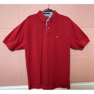 Tommy Hilfiger Polo Shirt Mens Large Red Classic Fit Short Sleeve