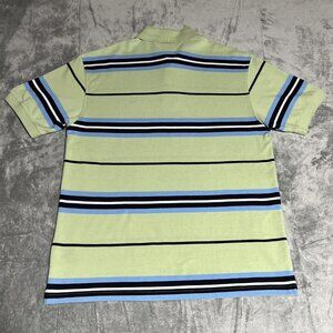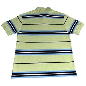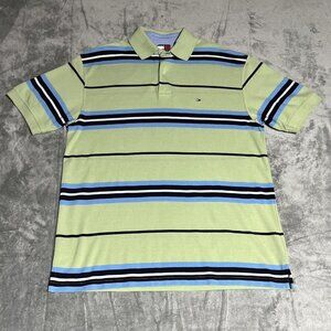 Tommy Hilfiger Polo Shirt Mens Medium Blue Green Striped Rugby Short Sleeve Golf